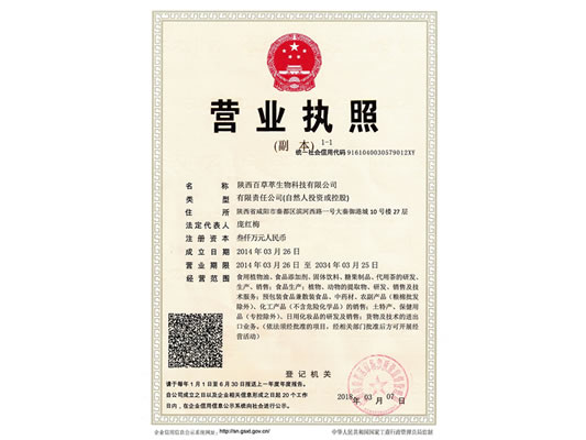 陜西百草萃生物科技有限公司,位于陜西省咸陽市秦都區濱河西路1號大秦御港城,公司成立于1996年,主要從事天然植物種植、研發(fā)、生產、加工、銷售為一體的高科技企業。主營醫(yī)藥原料、保健品原料、化妝品原料,精細化工原料。公司致力于人類健康保護事業“ 以科技為動力,以質量求生存” 的本質,依托陜西高新科技技術人才和科研優(yōu)勢,已形成多學科、全方位、高層次的技術管理精英團隊。充分利用秦巴山區的天然藥物資源,歷經多年發(fā)展為打造百草萃生物品牌奠定了基礎。